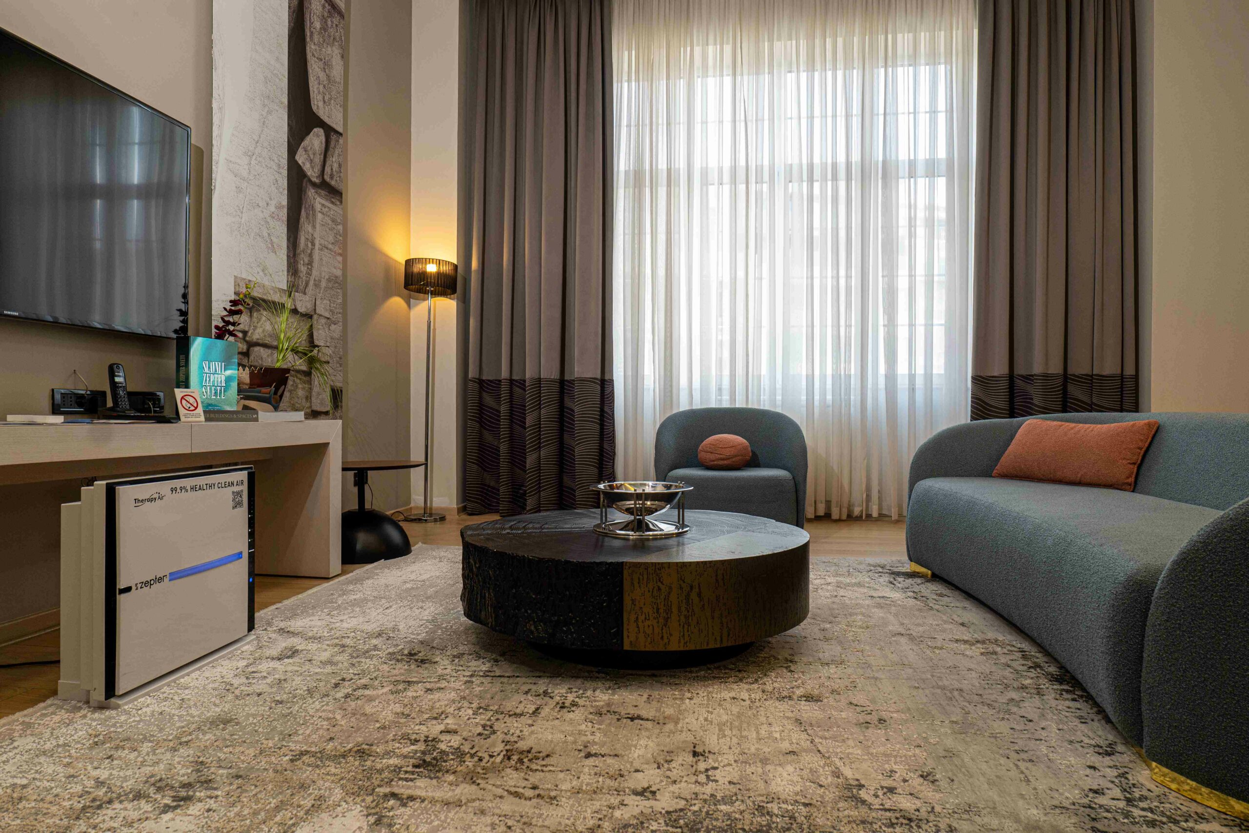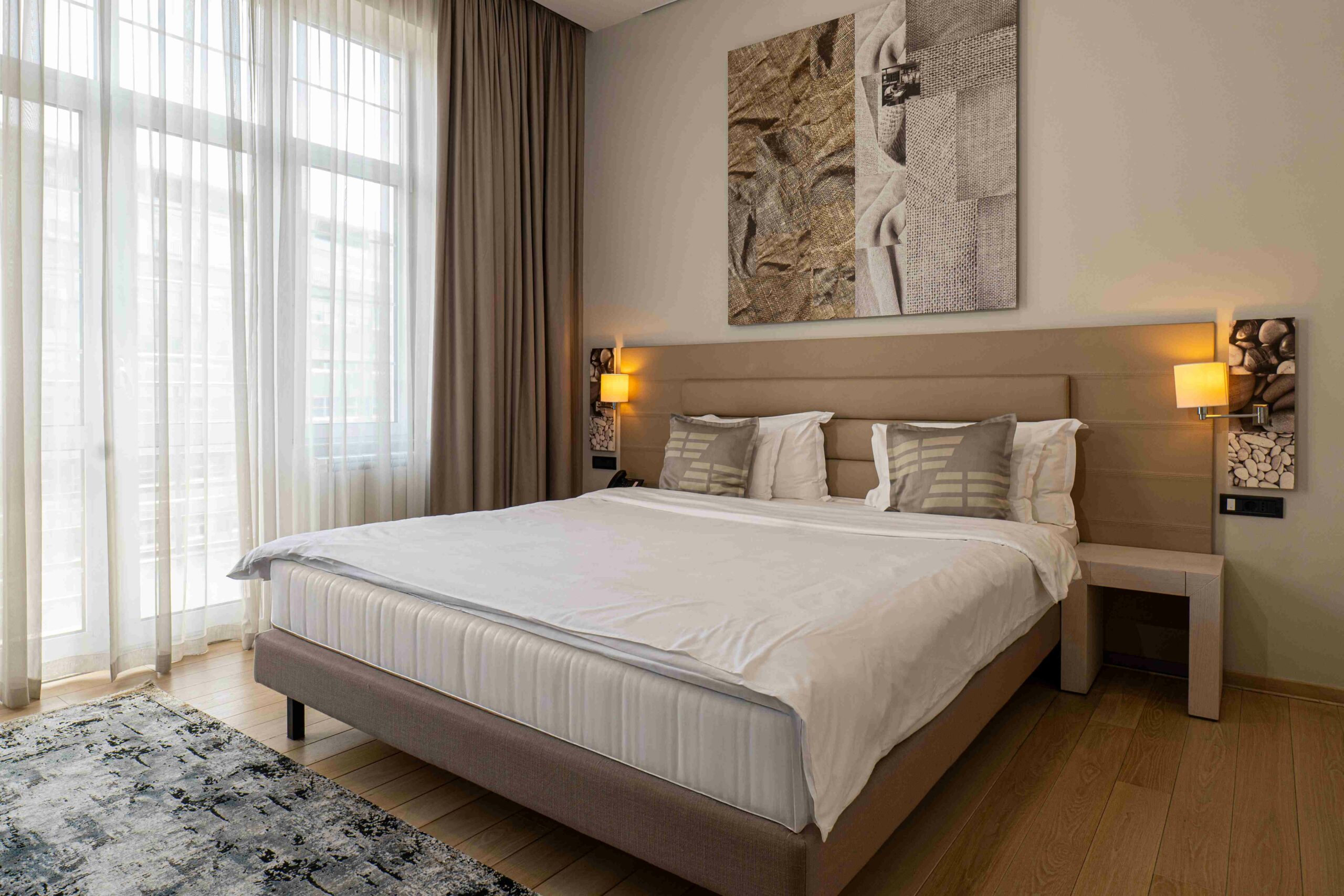 Deluxe sobe – površine 30 m2 predviđene su za jednu ili dve osobe. Raspolažu 1 spavaćom sobom i 1 kupatilom. Sobe imaju terase sa kojih se pruža impresivan pogled na Terazije.